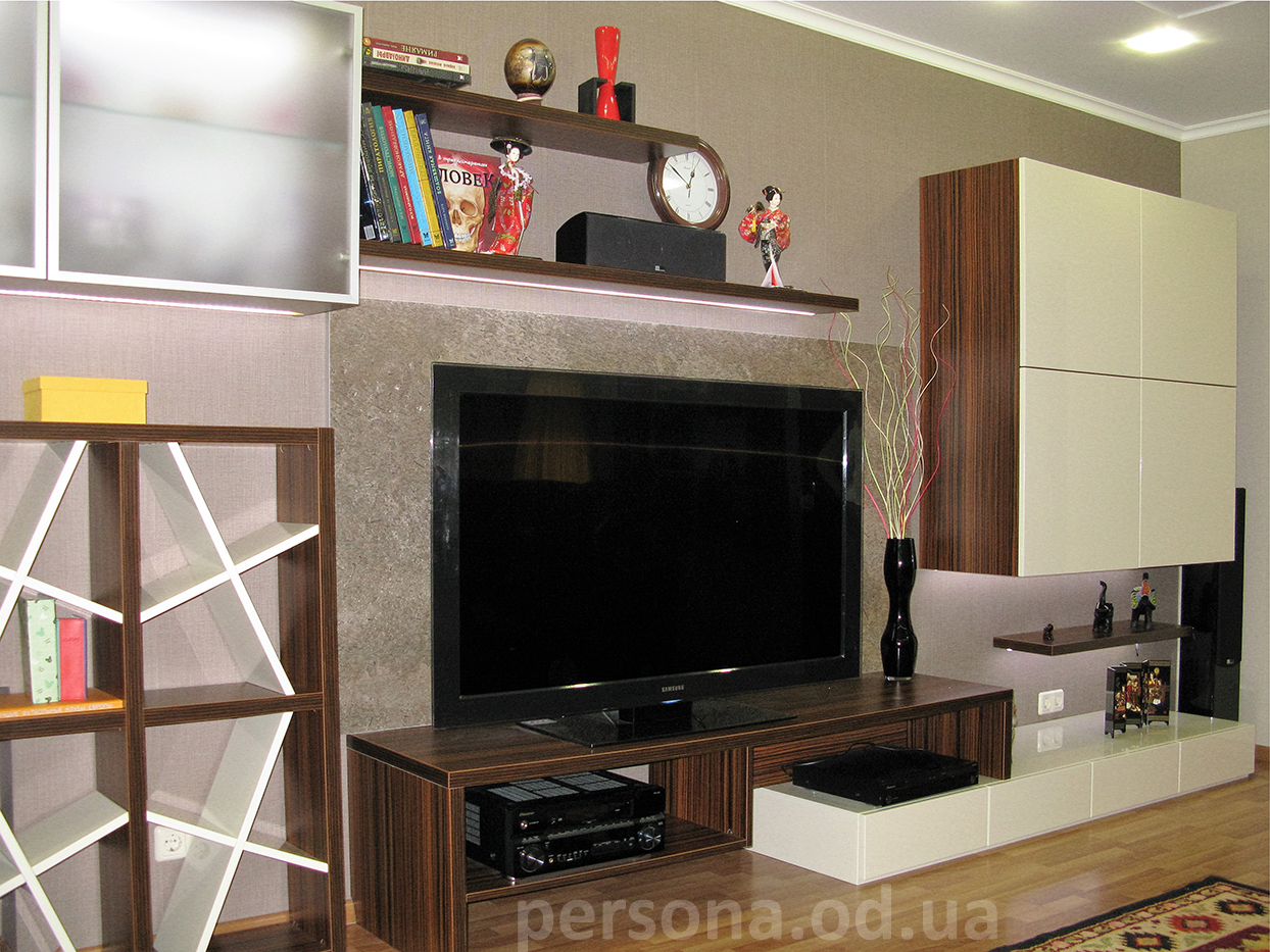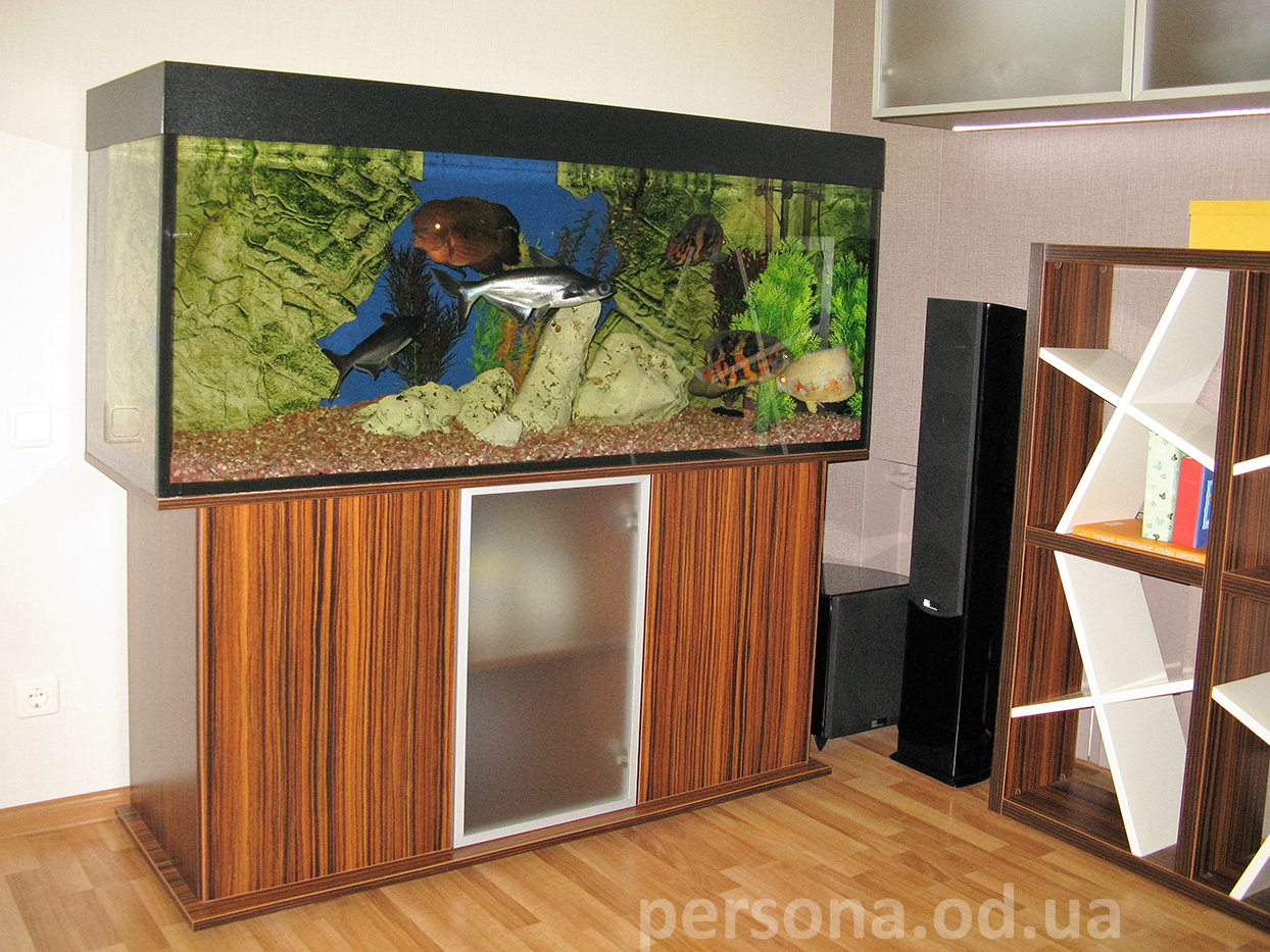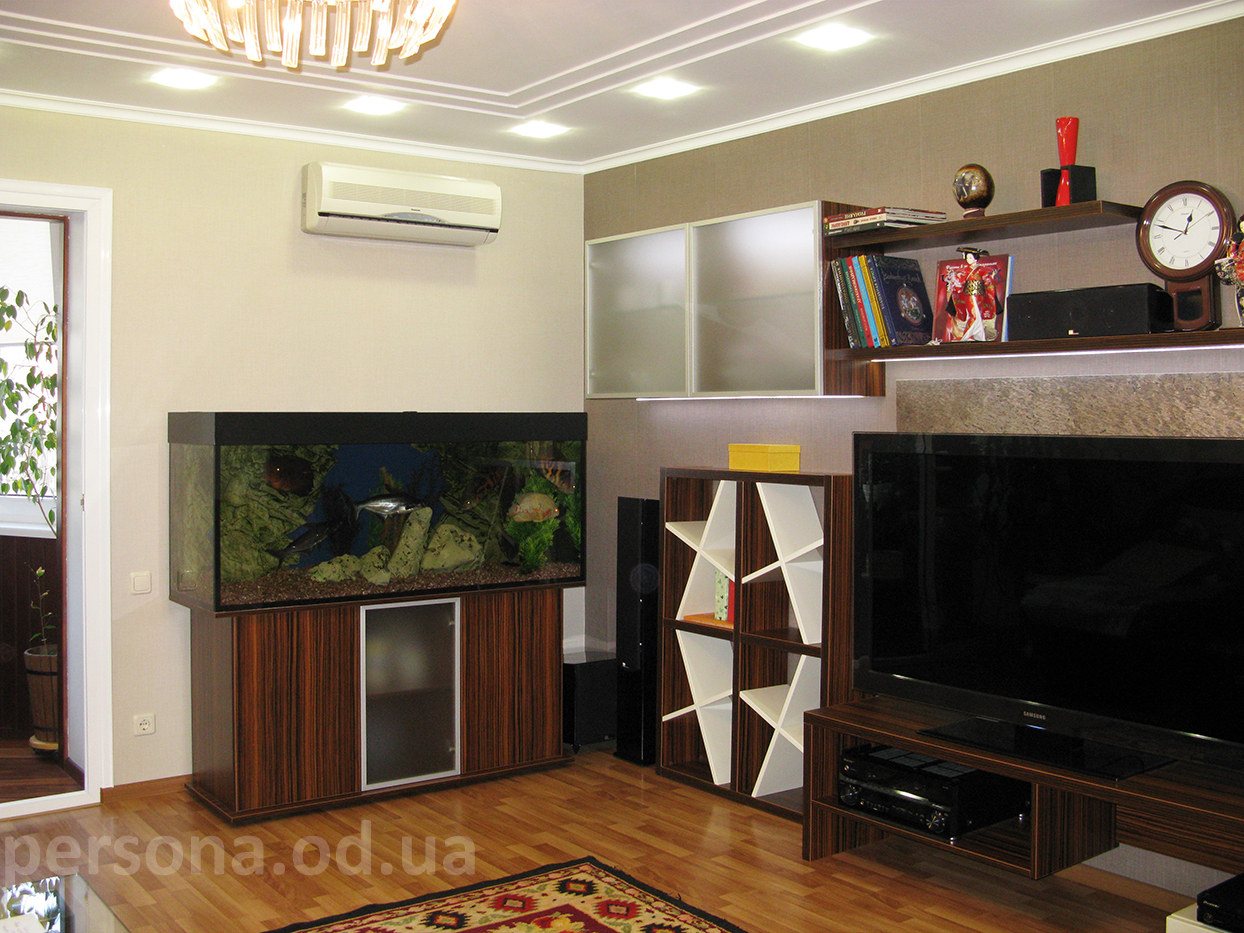Тумба под аквариум в полной гармонии с интерьером гостиной. Приобретая мебель в гостиную под заказ, Вы расставите бытовую технику, аквариумы на отведенные специально для них места.