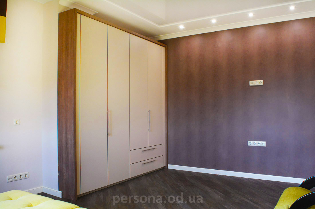 Двери гармошкой очень любят наши заказчики. Во-первых, качественная немецкая фурнитура превращает открывание дверей в удовольствие. Во-вторых, одновременно можно открыть все 4 двери. В-третьих, двери в распахнутом виде позволяют одновременно видеть всё содержимое шкафа, тем самым экономя время на поиски нужной вещи. Это особенно оценят те, кто у кого утром каждая минута на счету.